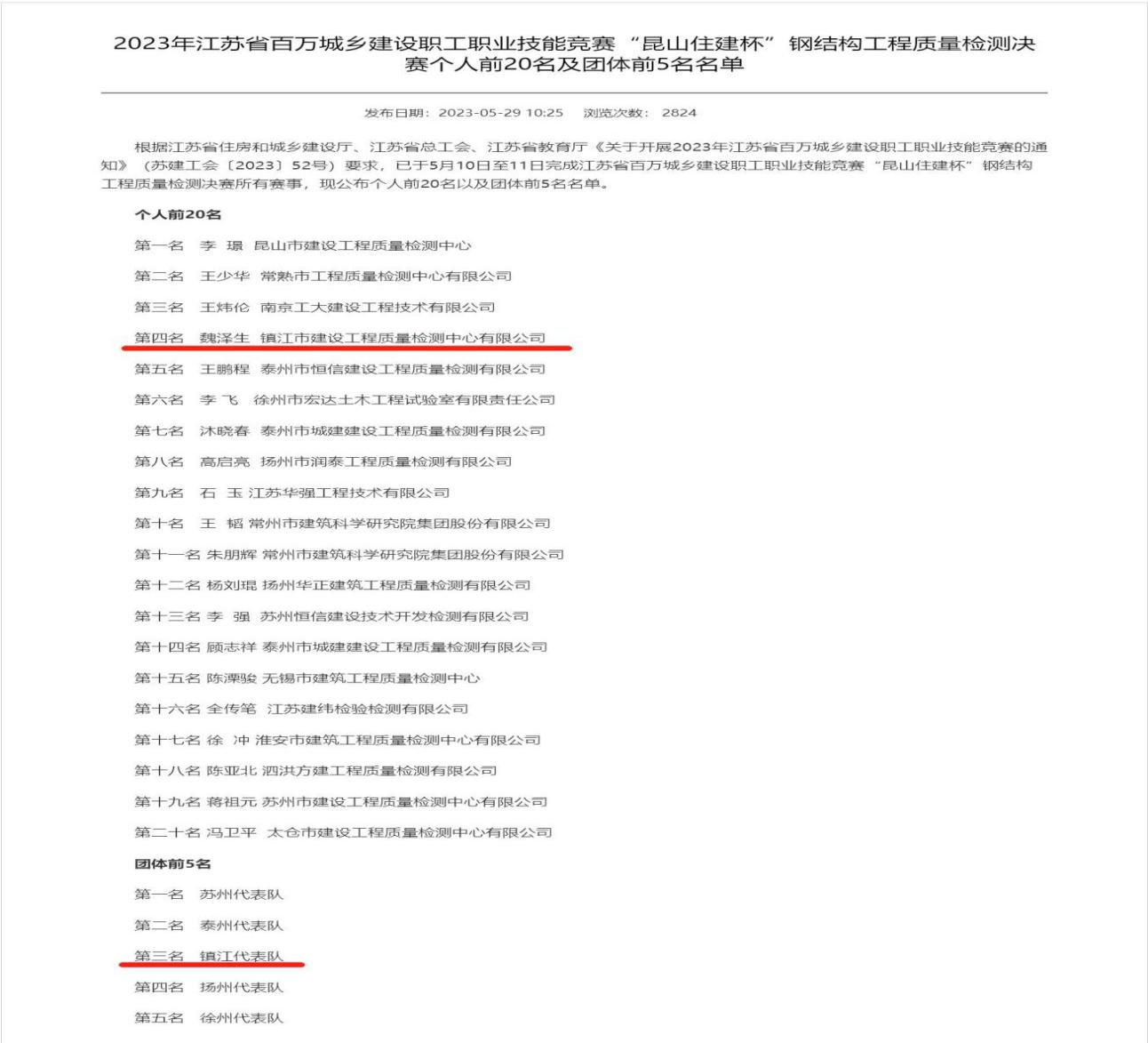 鎮江市檢驗檢測認證協會通過層層選拔組織了鎮江代表隊參加本次決賽。鎮江代表隊榮獲團體第三名、鎮江市建設工(gōng)程質量檢測中心有(yǒu)限公司的(de)魏澤生榮獲個(gè)人(rén)第四名的(de)優異成績。本次競賽納入省人(rén)社廳“江蘇工(gōng)匠(jiàng)”崗位練兵職業(yè)技能(néng)競賽活動,由江蘇省住房和(hé)城鄉建設廳副廳長王學峰與張鈞同志擔任競賽活動領導小(xiǎo)組組長,共有(yǒu)來自全省13個(gè)地(dì)級市的(de)65名鋼結構相(xiàng)關專業(yè)人(rén)才選手參加,競争激烈。